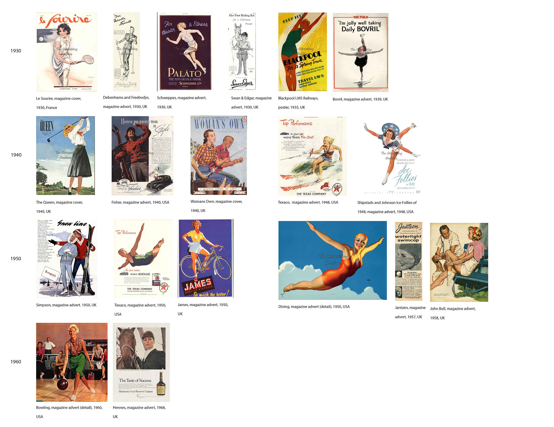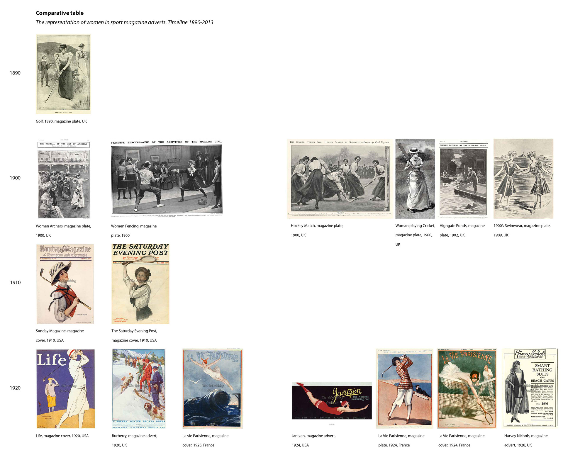 Las imágenes seleccionadas para el estudio y su posterior categorización no están asociadas a un orden cronológico. Aunque el estudio subraya los cambios en la forma en que se ha retratado a las mujeres en la historia, la categorización muestra cómo ciertas poses y el discurso detrás de ellas han permanecido en la mente de fotógrafos, publicistas y los receptores de sus contenidos.